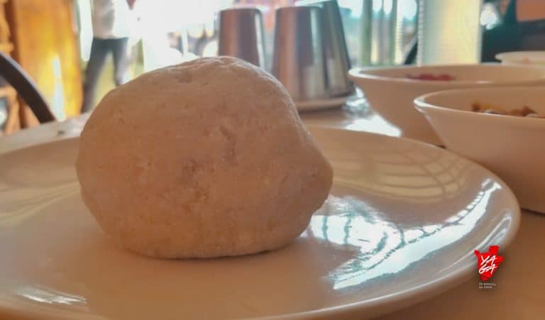 4. À l’aide de l’index, faites un petit trou dans lequel sera contenue ma compagne. Prenons par exemple si c’est un légume, après avoir formé le petit trou, introduisez le petit morceau dans l’assiette sans le lâcher complètement et toujours à l’aide du pouce mettez-y le légume et ainsi vous pouvez manger.