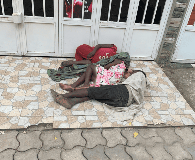 Arrivé près de chez Dimitri, mes yeux tombent sur une scène qui me glace le sang : trois corps étendus sur le sol, posé sur des carreaux usés par les années. Je m’approche. Il s’agit de trois enfants en situation de rue : deux petites filles et un petit garçon. Ils dorment profondément. Peut-être ont-ils passé la nuit à errer, à quémander devant les bars et les boîtes de nuit, dans l’espoir d’obtenir quelque chose à manger. Peut-être n’ont-ils récolté que des gifles, des insultes, ou pire encore… des abus. Face à ce qu’ils ont pu endurer durant la nuit, le froid du petit matin n’est qu’un détail. L’absence de couverture est une broutille comparée à la violence et à la malveillance quotidiennes des adultes. La rue, la galère, les a formés à la résilience. Ils ont appris la ténacité. Ils ont développé cette capacité à ‘’dormir’’, ou plutôt à recharger leurs batteries, pour pouvoir affronter, une fois de plus, les maux d’un monde devenu fou, insouciant, inhumain. Pour eux, chaque jour est une aventure nouvelle, différente de celle d’hier, différente de celle de demain.