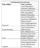 Le lendemain, après les attendus et les visas d’usage, la juge annonce la sentence : 10 des prévenus sont condamnés à la peine de servitude pénale à perpétuité, 2 sont condamnés à une peine de 20 ans de prison, 4 autres sont condamnés à une peine de 3 ans de prison, tandis que 4 autres sont acquittés. Au total, les condamnés devront verser 165 millions de Fbu aux ayants droit des victimes. Le tribunal spécifie aussi que 10 millions de Fbu seront personnellement versés à Euphrasie Ndayavugwa, toujours hospitalisée au centre de santé de Gasarara, ayant échappé à la mort de justesse.